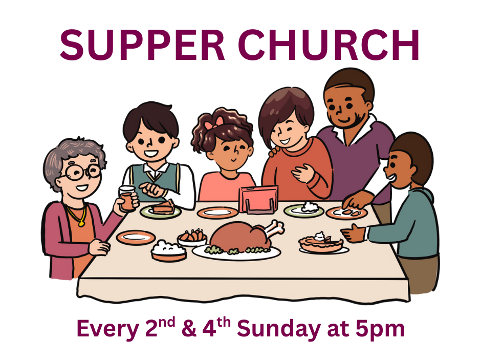 WOULD YOU CONSIDER providing an occasional simple dinner for 12-15 adults/children on a Supper Church Sunday? Plan to arrive by 5:00pm. And when you do, please, PLAN TO JOIN US for the evening!
