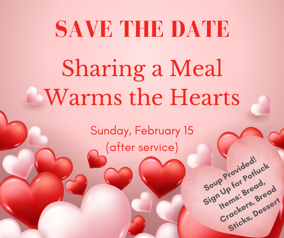 Please join us this Sunday (January 11) as we begin a new year of Supper Church. We meet from 5:00-6:30pm in the lounge/chapel. For planning purposes, please RSVP via this link. Hope to see you there! Guests are always welcome.